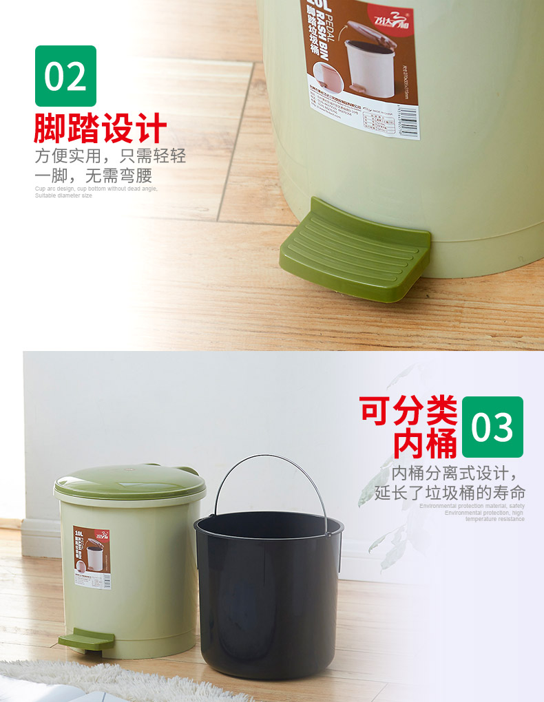 kaiyun(中国)一站式服务平台三和G1480 脚踏垃圾桶(10L)/G1490 中号脚踏卫生桶(5.5L)kaiyun(中国)一站式服务平台特点