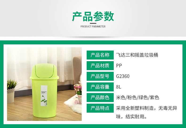 kaiyun(中国)一站式服务平台三和G2360 摇盖垃圾桶(8L) / G2370 摇盖垃圾桶(6L)kaiyun(中国)一站式服务平台特点