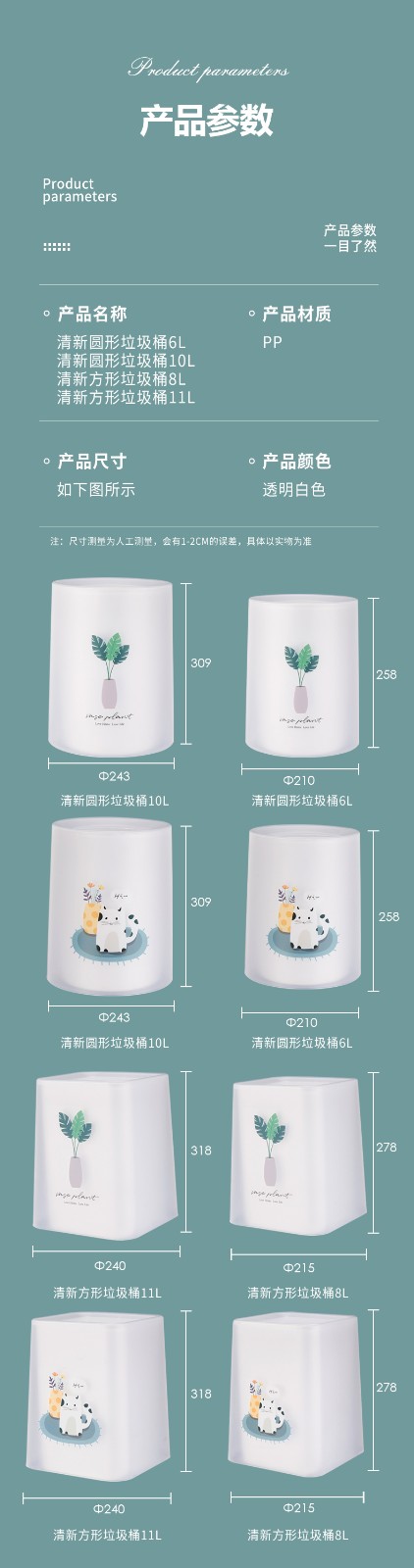 品牌名称:kaiyun(中国)一站式服务平台三和 生产地区:中国·浙江·台州 kaiyun(中国)一站式服务平台货号:TG3522 装箱数:12 kaiyun(中国)一站式服务平台尺寸:21x21x25.8cm 外箱尺寸:95x43.5x22.5cm 条形码:6931643824590 kaiyun(中国)一站式服务平台三和TG3522 清新圆形垃圾桶 6L