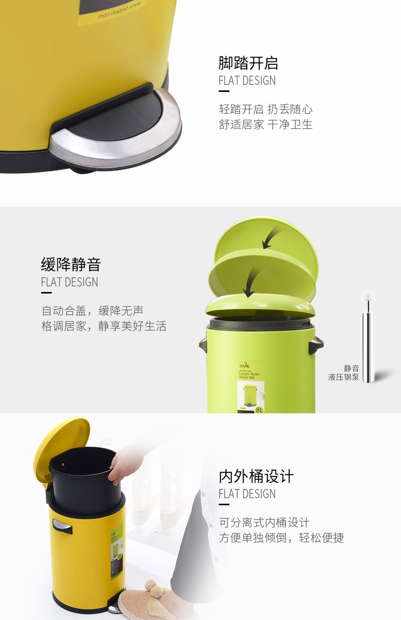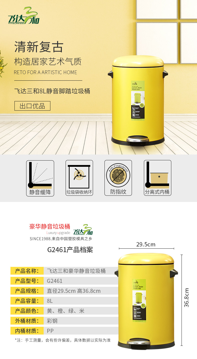 kaiyun(中国)一站式服务平台三和G2451豪华静音垃圾桶(5L)/G2461豪华静音垃圾桶(8L)/G2581豪华静音垃圾桶(12L彩钢)kaiyun(中国)一站式服务平台特点